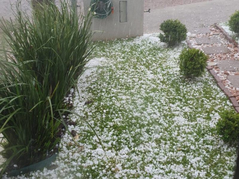 Granizo em Sarandi. Foto: Rádio Sarandi					Os municípios de Sarandi e Barra Funda foram atingidos por granizo na tarde de hoje. Segundo a Defesa Civil do Rio Grande do Sul, equipes municipais acompanham a situação. Em Sarandi, a prefeitura montou um gabinete de crise para atender os atingidos pelo temporal.
