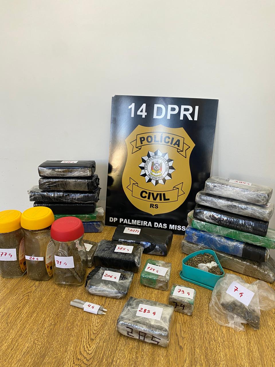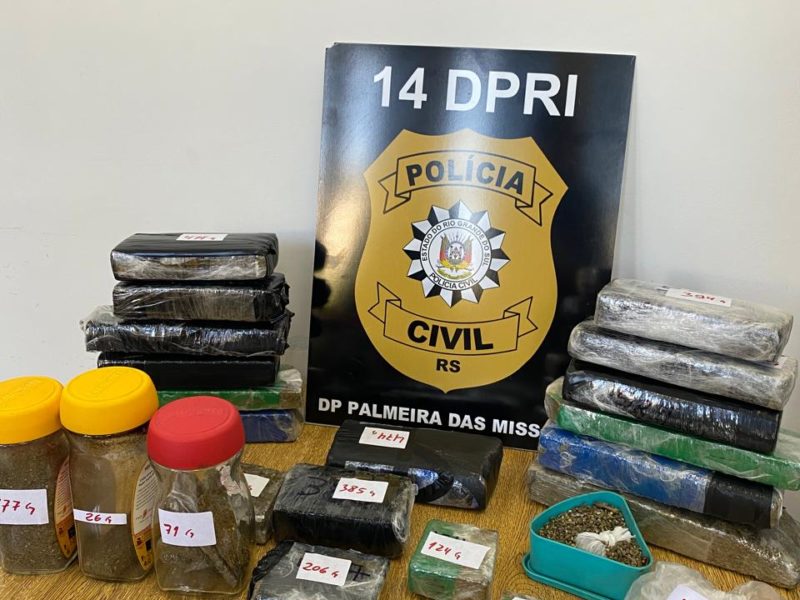 Foto: SERVIÇO DE COMUNICAÇÃO SOCIAL 14ª DPRI Um homem de 29 anos foi preso em flagrante por tráfico de drogas e posse de armas em Palmeira das Missões, durante ação da Polícia Civil realizada nesta quarta-feira, 01.