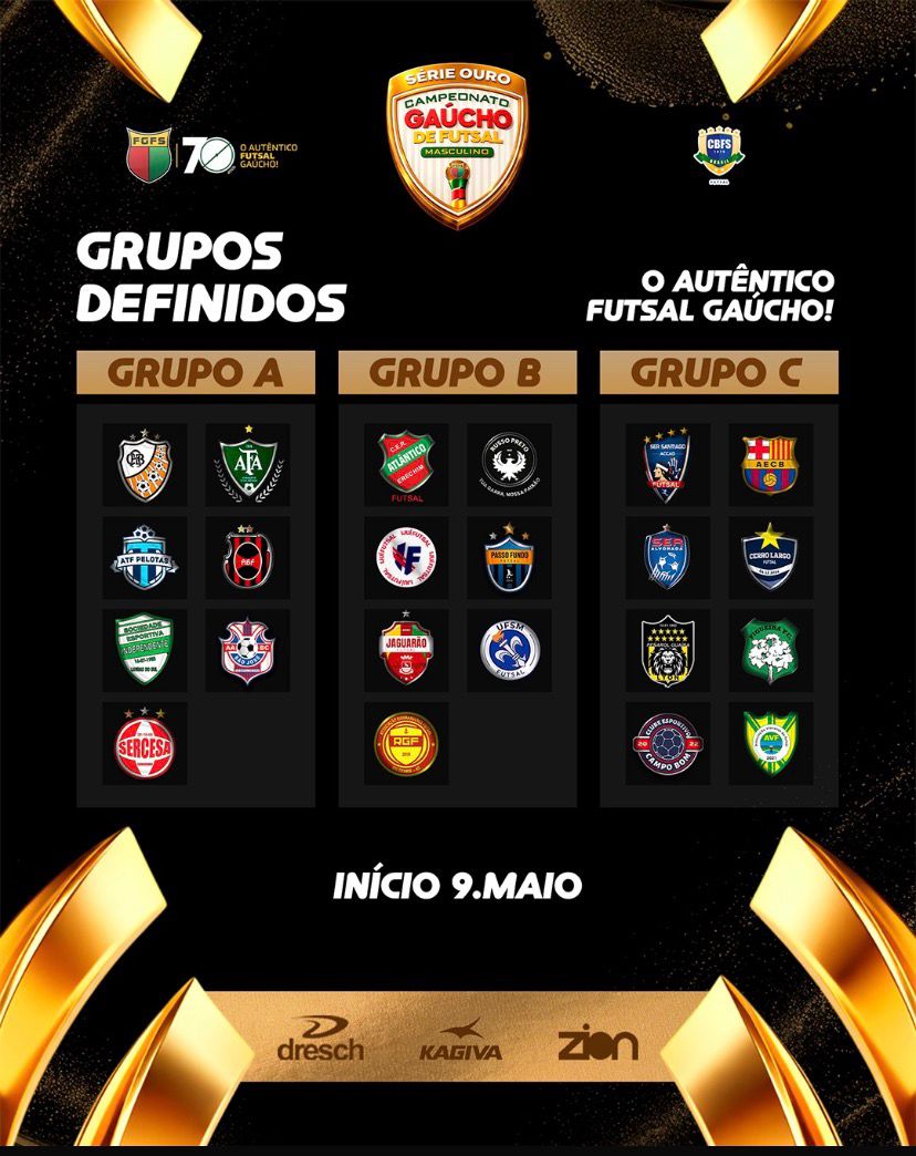O Ijuí Futsal conheceu neste sábado (11) os adversários que vai enfrentar na primeira fase da Série Ouro. A equipe caiu no Grupo B, com Atlântico de Erechim, Russo Preto de Não Me Toque, Passo Fundo, Jaguarão, UFSM e Riograndense de Rio Grande. Na primeira fase, as equipes atuam em turno e returno contra adversários do seu próprio Grupos. Os Grupos A e B possuem sete equipes cada um; desses, cinco classificam para o mta-mata. O grupo C tem oito times e, desses, passam 6. Os dois piores times pelo percentual estão rebaixados. Oitavas de final quartas, semi e final em dois jogos.