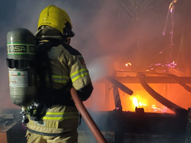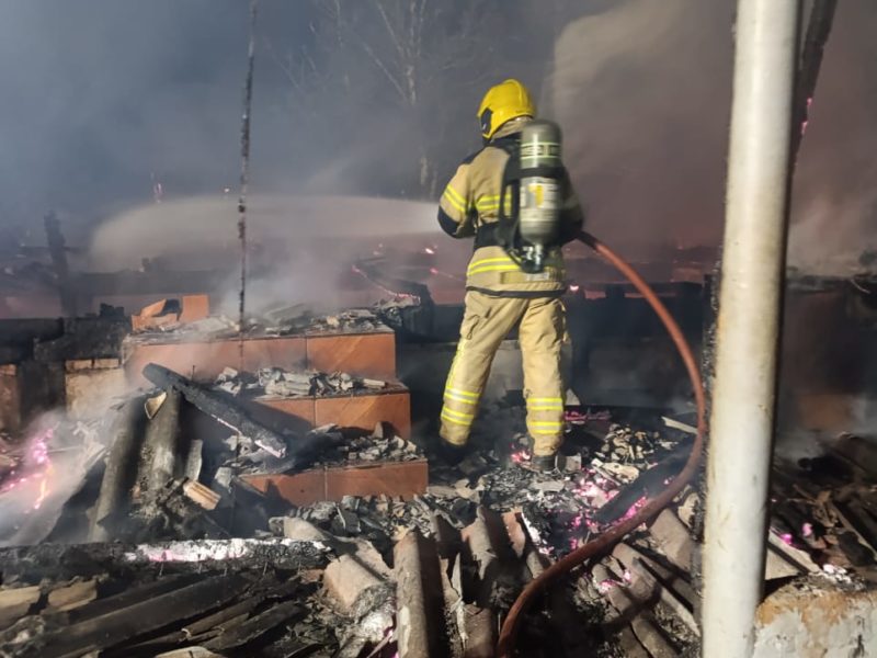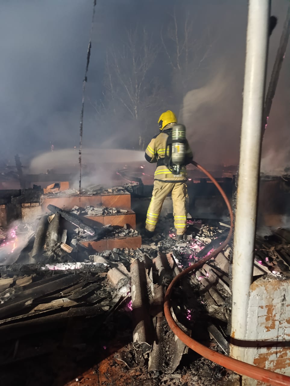 Foto: Corpo de Bombeiros Santa Rosa Um incêndio destruiu uma residência de madeira de aproximadamente 130 metros quadrados na noite de ontem, 28, na localidade de Lajeado Minas, interior de Tuparendi.