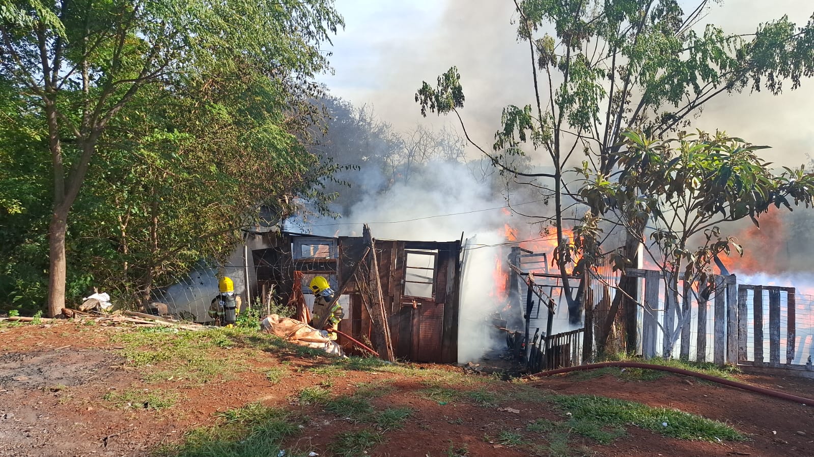 Três casas de madeira foram destruídas por incêndio por volta das 16 horas e 45 minutos de hoje no bairro Luis Fogliatto de Ijuí, imediações do campo de futebol e da penitenciária Modulada. Mesmo com a chegada rápida dos bombeiros, as chamas causaram perda total dos imóveis e dos pertences. Não houve feridos. A proximidade entre as casas propiciou que o sinistro se espalhasse entre as residências. O Corpo de Bombeiros evitou que o fogo se alastrasse para imóveis vizinhos. Até agora não existe informação da causa do incêndio.