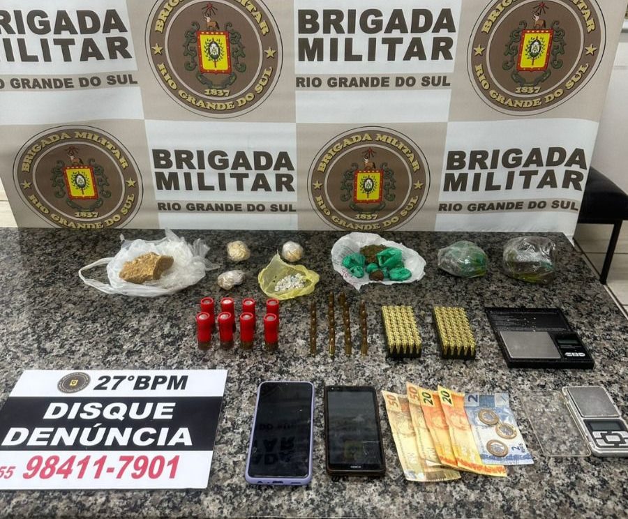 Foto: Com. Soc. 27º BPM A Brigada Militar realizou na noite de ontem, 31, a prisão de um indivíduo por tráfico de entorpecentes e posse irregular de munições, no bairro União, em Santo Ângelo.