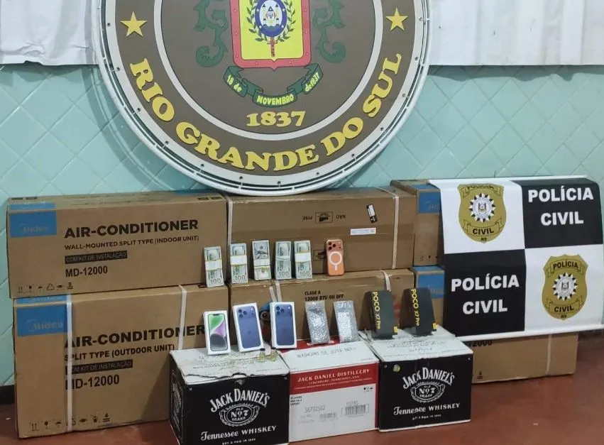 Brigada Militar abordou um automóvel Astra conduzido pelo suspeito, localizando três ares-condicionados, 36 unidades de whisky, oito celulares, duas ampolas de propionato de drostanolona (anabolizante sintético), além de 50 mil dólares em espécie.