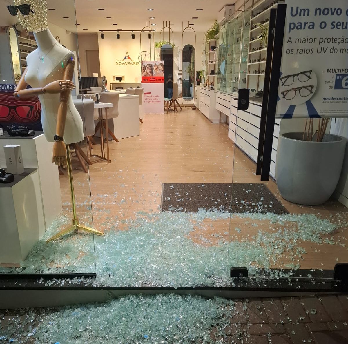 Foto: Grupo Caçadores de Notícias de Ijuí Uma ótica foi arrombada e diversos itens foram furtados na noite de ontem, na Rua do Comércio, Centro de Ijuí.