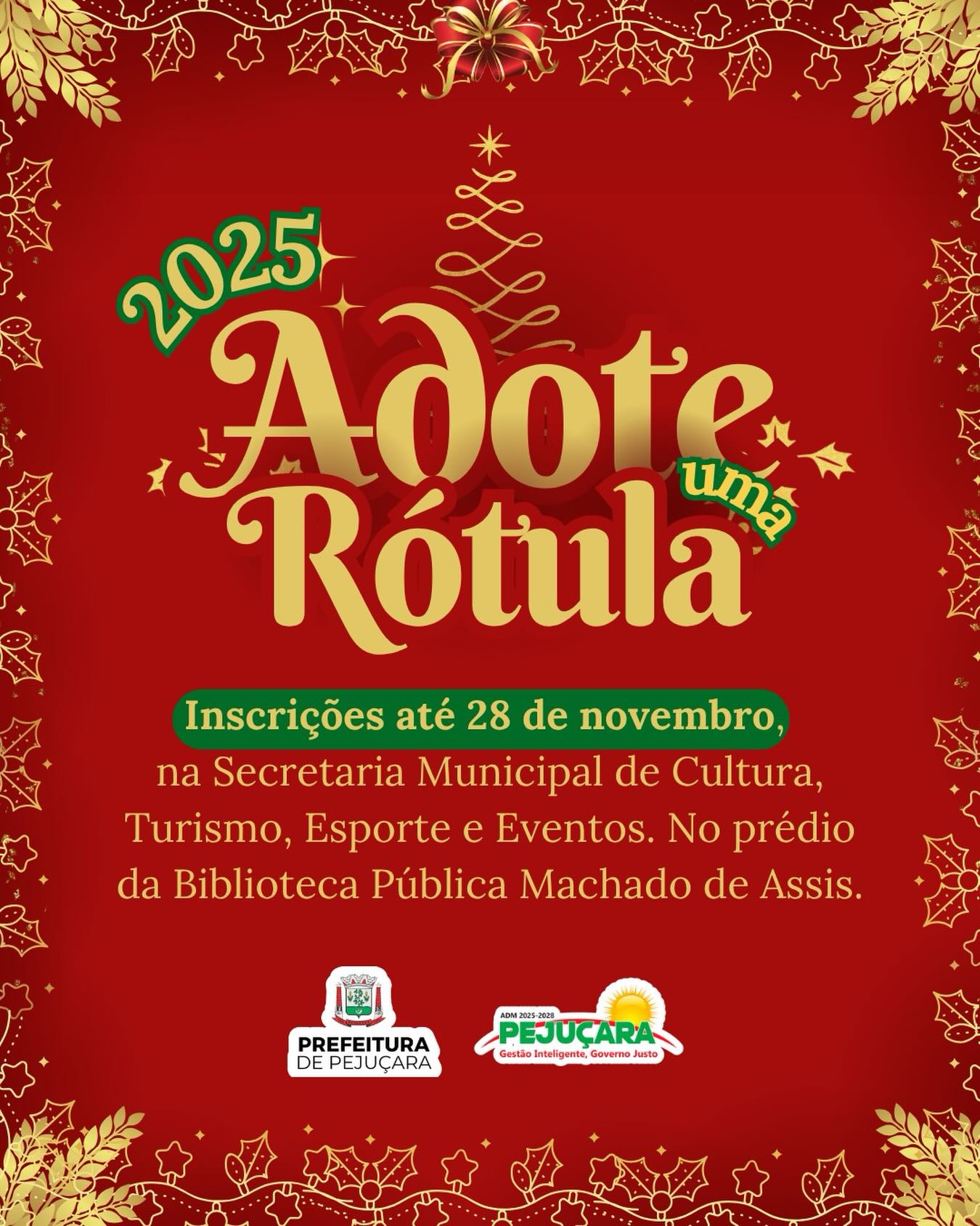 As inscrições para a decoração das rótulas da cidade de Pejuçara e das árvores da praça Visconde de Rio Branco para o Natal terminam hoje. Empresas, entidades, escolas e comunidade em geral podem se inscrever na Secretaria Municipal de Cultura, Turismo, Esporte e Eventos. O prazo para ornamentação vai até 5 de dezembro. A abertura do Natal em Pejuçara vai ocorrer em 6 de dezembro.