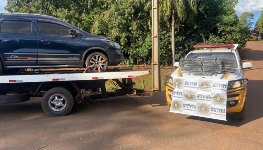 No interior do carro, foram localizados aproximadamente 46 quilos de maconha. Com apoio do Pelotão Rodoviário de Palmeira das Missões, da guarnição do 7º Batalhão de Polícia Militar (7º BPM) de Santo Augusto e da Força Tática, foram realizadas buscas na área, sendo o casal localizado e detido. Os suspeitos foram encaminhados à Delegacia de Polícia para os procedimentos legais cabíveis.