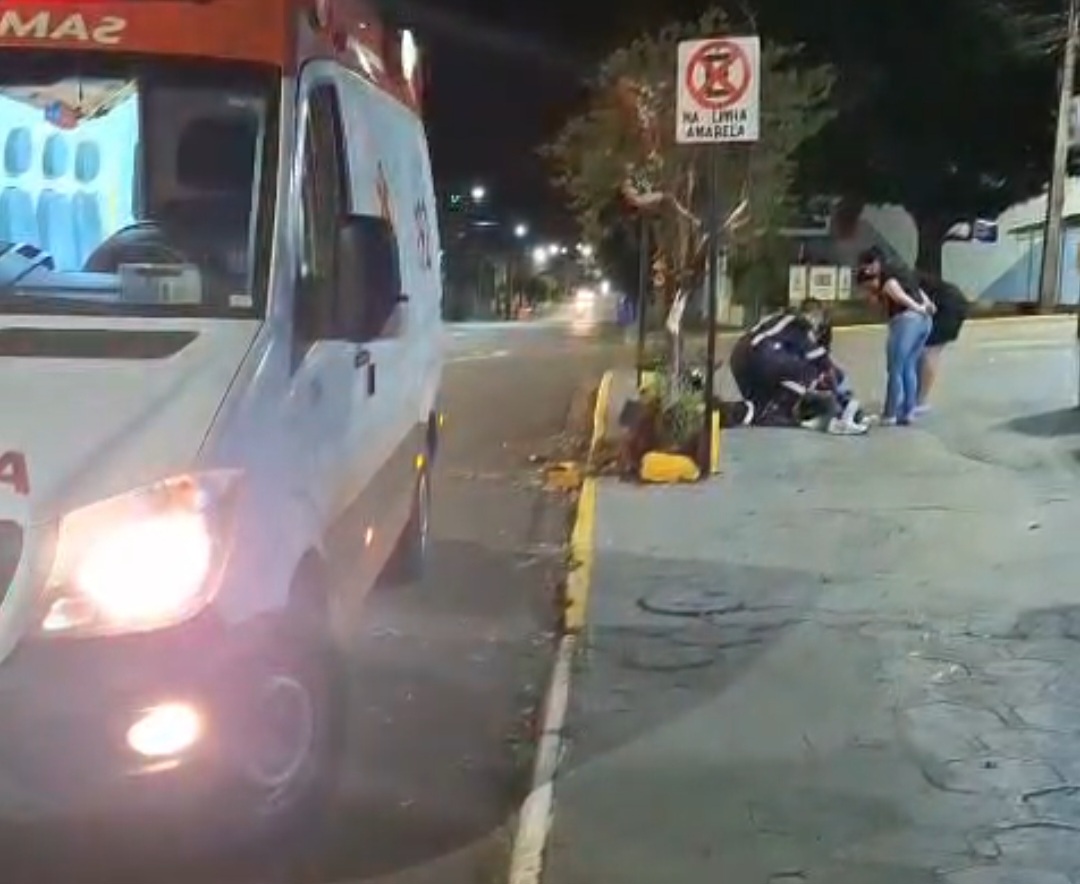 Um motociclista ficou ferido após colidir contra um canteiro localizado na calçada da Rua Doutor Pestana, nas proximidades da rotatória com a Rua Coronel Dico, no centro de Ijuí. O acidente aconteceu pouco depois da meia-noite, início deste domingo, 5.