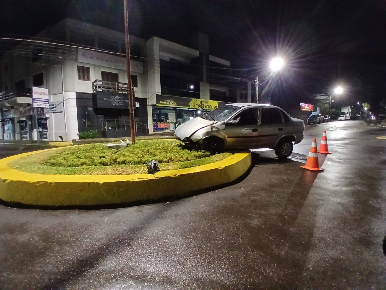 Um acidente de trânsito foi registrado por volta das 04h10 da madrugada deste sábado (7), no cruzamento da Rua Gaspar Silveira Martins com a Avenida Júlio de Castilhos, em Três Passos. No local, um veículo Corsa colidiu contra o canteiro central da rótula.