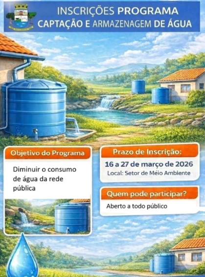 A secretaria de Agricultura e Meio Ambiente de Nova Ramada vai receber inscrições para o Programa Captação e Armazenagem de Água. Interessados poderão se inscrever 16 a 27 deste mês, no setor de Meio Ambiente. O objetivo é diminuir o uso de água da rede pública, com possibilidade de armazenar água de nascentes e de calhas.