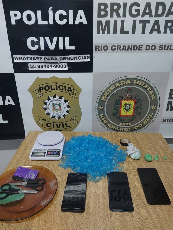 Planejada com base em informações de inteligência, a operação foi executada com precisão, levando à prisão dos suspeitos e à apreensão de diversos materiais relacionados à atividade criminosa. Entre os itens apreendidos estão porções de cocaína, pinos plásticos utilizados para embalar entorpecentes, uma balança de precisão, uma motocicleta, aviamentos e um celular furtado.