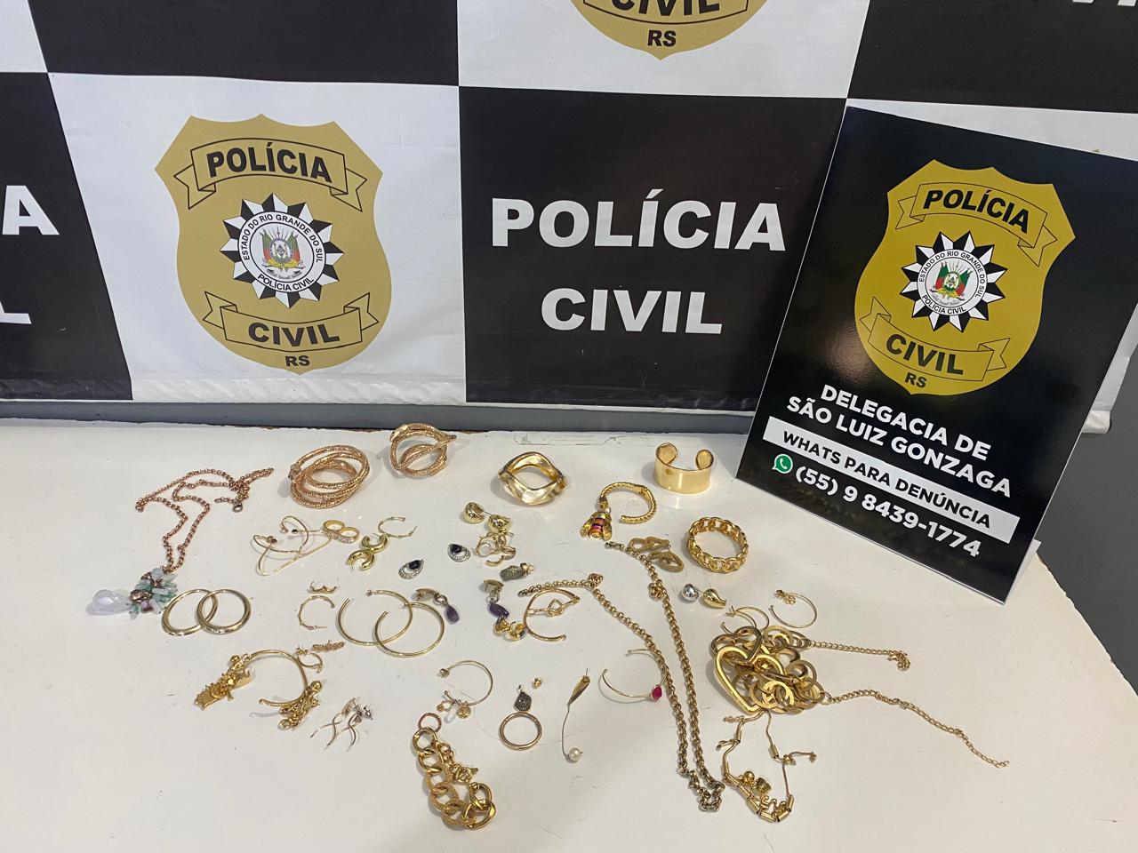A Polícia Civil de São Luiz Gonzaga prendeu em flagrante na manhã desta sexta-feira, 14, um homem de 32 anos suspeito de furto qualificado. A ação ocorreu após o furto em uma residência, de onde foram levados objetos pessoais e joias. O suspeito foi localizado no bairro Auxiliadora em posse dos itens furtados, que foram recuperados e devolvidos à vítima. Conforme a polícia, ele já possui diversas passagens por crimes contra o patrimônio.
