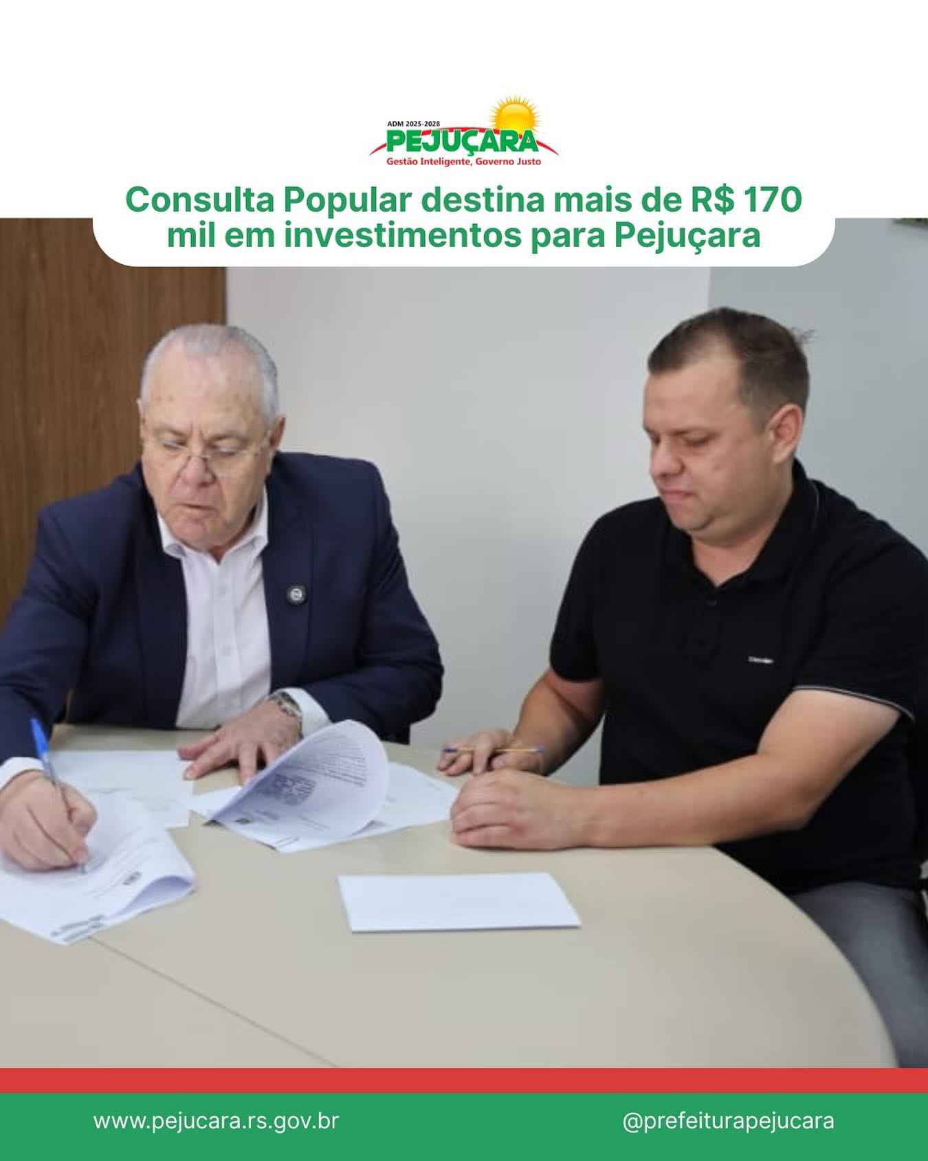 A partir da votação da Consulta Popular 2025/2026, o município de Pejuçara será beneficiado com recursos destinados às seguintes áreas: