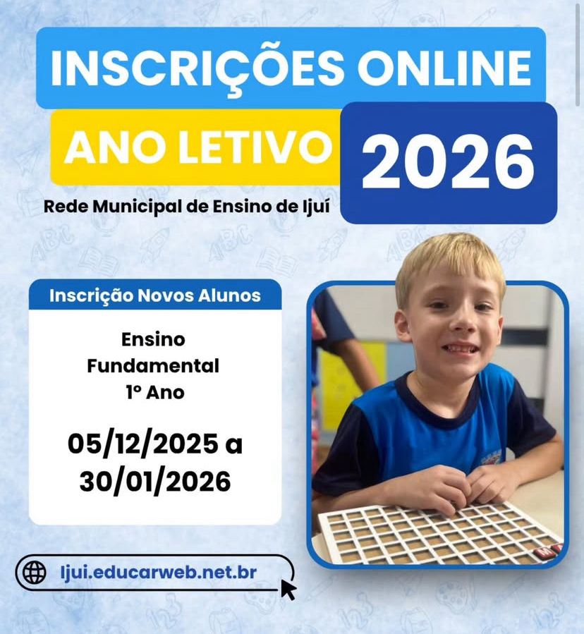 Secretaria Municipal de Educação (SMED) inicia nessa sexta-feira (5) o período de inscrições online para novos alunos para o 1º ano do Ensino da Rede Municipal de Ensino de Ijuí.