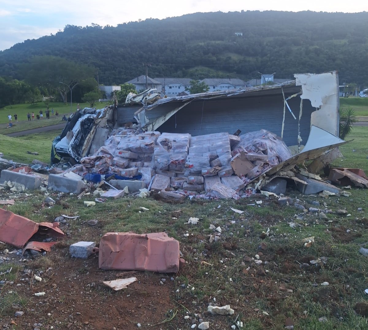 Conforme a Polícia Militar Rodoviária, antes da chegada da guarnição, a carga de linguiça toscana foi saqueada por populares que estavam nas proximidades.
