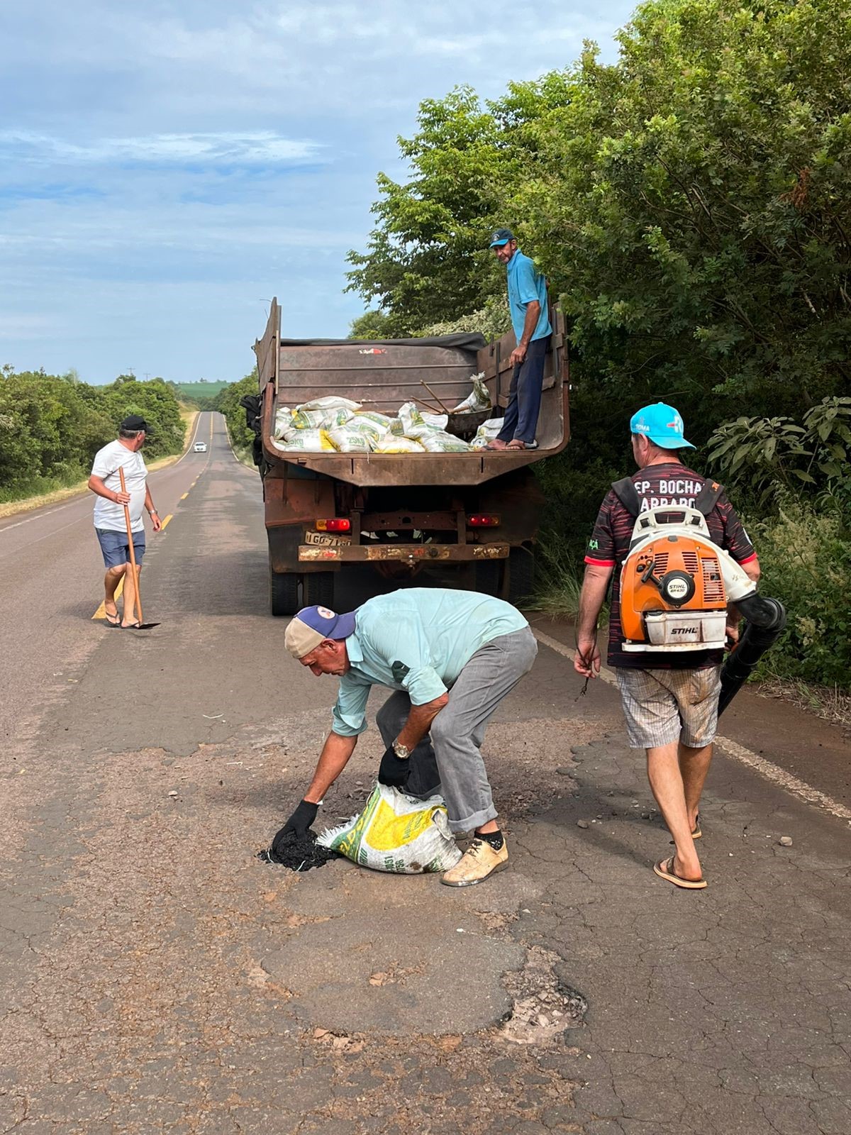 Nesta quarta-feira (28), a Secretaria de Obras de Pejuçara iniciou operação tapa-buracos nas rodovias ERS-553 e ERS-512. A ação tem como objetivo melhorar as condições de trafegabilidade e garantir mais segurança aos motoristas. Os trabalhos atendem tanto a comunidade pejuçarense quanto os visitantes que chegam ao município para a Festa da Uva e do Trigo, que acontece neste final de semana, nos dias 31 de janeiro e 1º de fevereiro. A orientação é para que os motoristas mantenham atenção ao circular pelas vias onde os serviços estão sendo realizados.