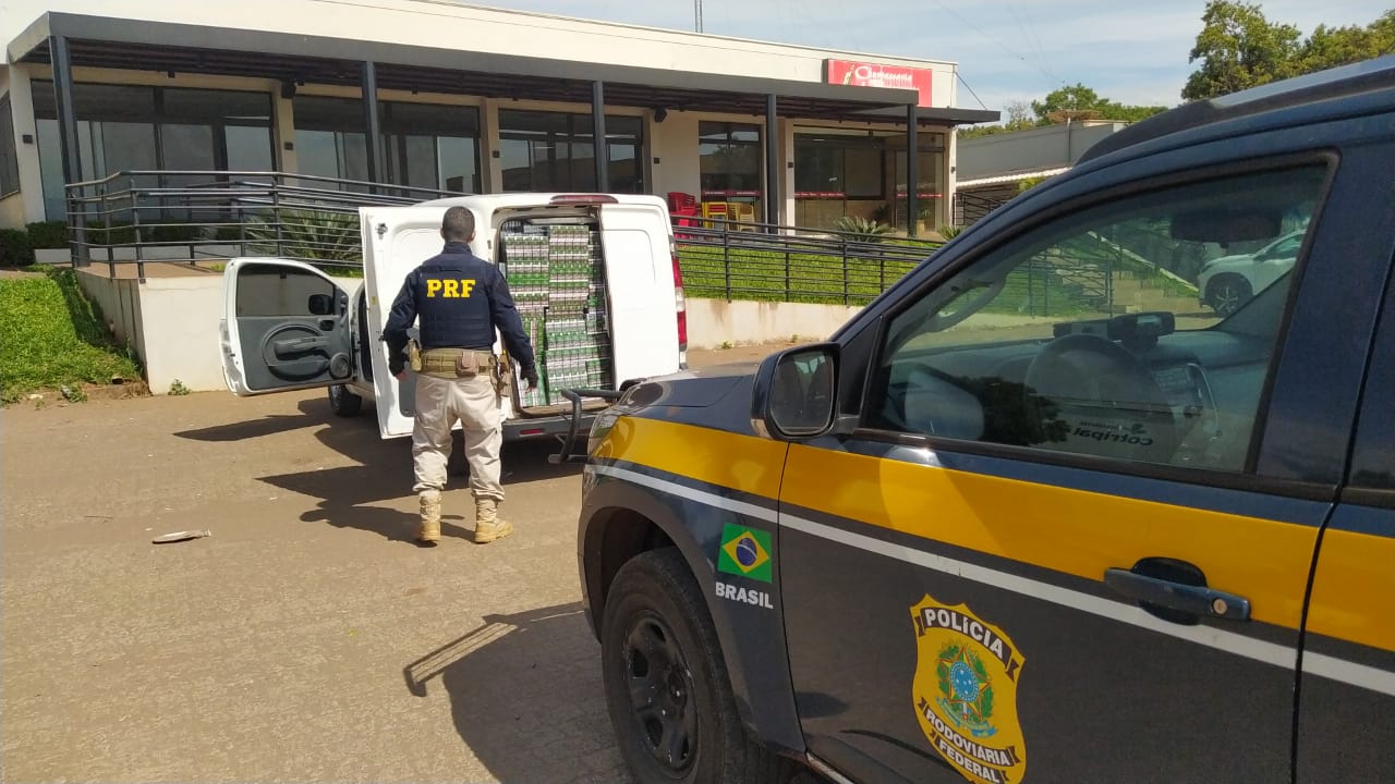 Na manhã de hoje, a Polícia Rodoviária Federal prendeu um argentino e apreendeu aproximadamente 26 mil maços de cigarros de origem estrangeira que ingressaram ilegalmente no país e eram transportados em uma Fiorino. A ação ocorreu na BR 158, em Condor. Policiais abordaram uma Fiorino, placas de Blumenau, Santa Catarina. O veículo estava totalmente carregado com caixas de cigarros contrabandeados, total de 26 mil maços. O motorista, de 25 anos, natural da Argentina, foi preso em flagrante pelo crime de contrabando e encaminhado para a polícia judiciária de Santo Ângelo, com a carga de cigarros e o veículo apreendido.