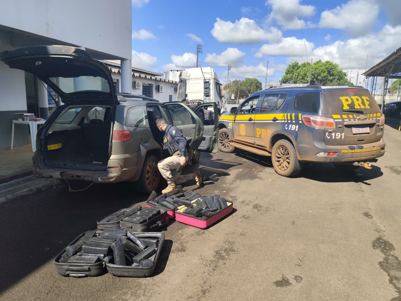 Em fiscalização no veículo foram localizados vários tabletes de maconha, que após a pesagem totalizaram 101,6 quilos da droga. Após consultas, foi constatado que as placas estavam adulteradas e que o veículo estava com registro de furto, crime ocorrido em Cascavel/PR em 2026. O motorista de 25 anos e a passageira de 21 anos, ambos paraguaios, foram presos em flagrante. Ele já possuía ocorrência criminal por tráfico de drogas registrada no final do ano passado. O veículo e o entorpecente foram apreendidos e entregues à Polícia Judiciária.