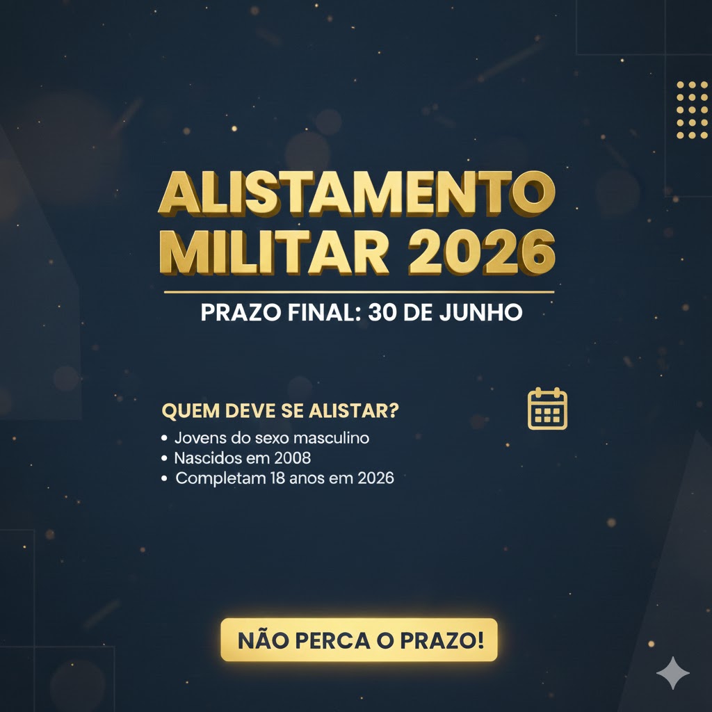 O período de alistamento militar obrigatório para jovens brasileiros do sexo masculino que completam 18 anos em 2026 já está aberto e segue até o dia 30 de junho. O processo deve ser realizado por todos os cidadãos nascidos em 2008, preferencialmente de forma online através do site oficial do Exército Brasileiro, utilizando o login do portal Gov.br para identificação. Aqueles que encontrarem dificuldades com o sistema digital ou não tiverem acesso à internet podem procurar a Junta de Serviço Militar de seu município para realizar o procedimento presencialmente, portando CPF, RG e comprovante de residência.