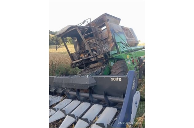 Um incêndio de grandes proporções causou sérios prejuízos a um produtor rural da localidade de Alto Alegre, no interior de Tenente Portela, na tarde deste sábado (24). Uma colheitadeira foi praticamente destruída pelo fogo.
