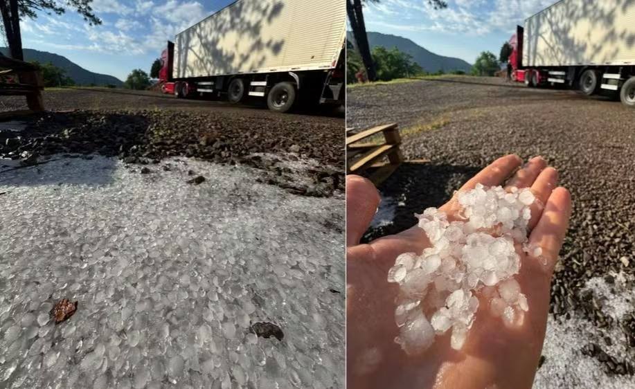 Cidades do Rio Grande do Sul voltaram a registrar queda de granizo entre a noite de quinta-feira (27) e a manhã desta sexta-feira (28), afetando principalmente a região da Serra do estado. Cerca de 50 propriedades rurais foram atingidas e tiveram suas safras comprometidas.