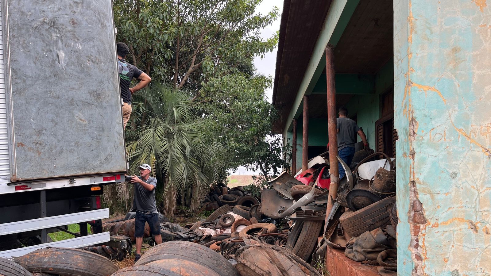 As tratativas para a retirada do material tiveram início ainda no ano passado. Em março deste ano, o Município chegou a realizar um processo de licitação para o leilão dos pneus, porém a iniciativa não obteve êxito. Diante disso, foi necessário um novo encaminhamento, com a contratação de uma empresa especializada para efetuar o recolhimento. Enquanto a solução definitiva não era viabilizada, a equipe de Vigilância em Saúde manteve ações contínuas no local. A cada 15 dias, profissionais realizavam a pulverização da área, com o objetivo de conter a proliferação do mosquito transmissor da dengue, já que o acúmulo de água nos pneus representa um ambiente propício para o desenvolvimento do vetor.