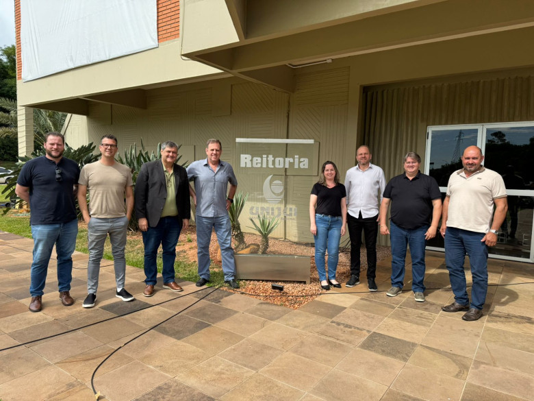 A reitoria da Unijuí, a partir do reitor, professor Dieter Rugard Siedenberg, e do vice-reitor de Pós-Graduação, Pesquisa e Extensão, professor Daniel Knebel Baggio, recebeu, nesta segunda-feira, 15, uma comitiva formada pelo deputado estadual Aloísio Classmann, os prefeitos Boa Vista do Buricá, Joãozinho Sehnem, que é presidente da Amufron, Tiradentes do Sul, Elton Luis Pilger, representando a Amuceleiro; e de Redentora, Malberk Antoine Kunst Dullius, presidente da Amuceleiro; além de assessores parlamentares e representantes de empresas.