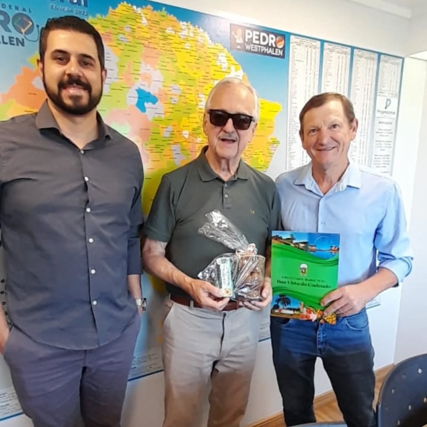 O vice-prefeito de Boa Vista do Cadeado, José Fracaro, e o secretário de Administração, Filipe Barasuol, estiveram em Porto Alegre, onde cumpriram agenda com parlamentares. Foram recebidos pelo deputado federal Pedro Westphalen, pela deputada estadual Silvana Covatti e pelo senador Luis Carlos Heinze, quando trataram de demandas e captação de verbas para investimentos na área da saúde, ou seja, compra de veículo de passeio e ambulância, ainda para asfaltamento.