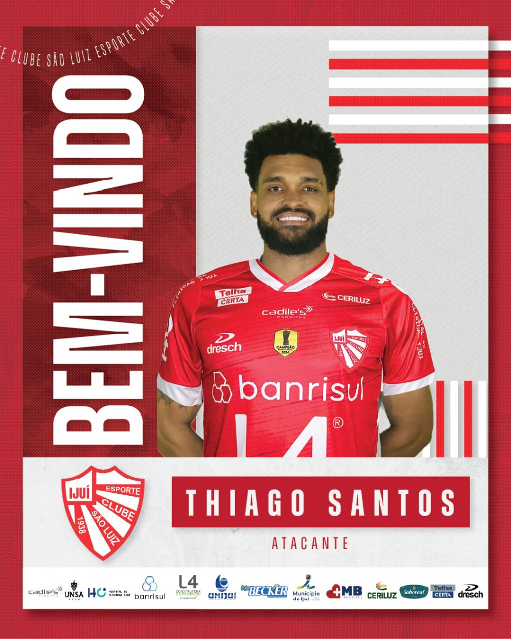 O São Luiz segue firme na construção do elenco para a temporada 2026! O atacante Thiago Santos, de 35 anos, chega para reforçar o setor ofensivo do Rubro.