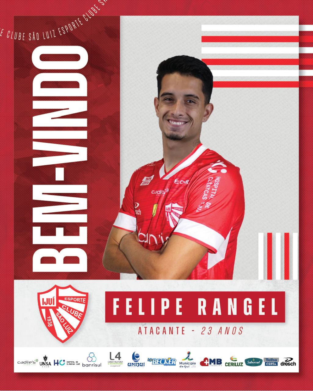 Mais uma chegada para a temporada 2026. O atacante Felipe Rangel, de 23 anos, é o novo reforço do São Luiz para a disputa do Gauchão! Natural de Condor (RS), o jogador chega após duas temporadas de destaque no futebol catarinense e gaúcho.