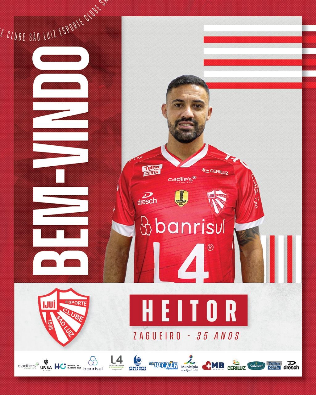 Tem mais reforços para a temporada 2026! O zagueiro Heitor, de 35 anos, é o novo nome do sistema defensivo do São Luiz.