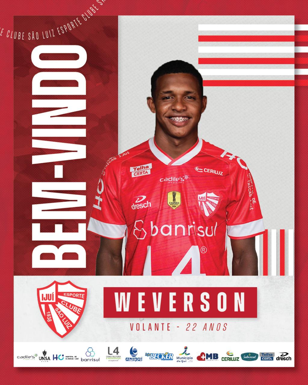 O Rubro segue na montagem do elenco para a temporada 2026! O volante Weverson, de 22 anos, é o novo reforço para o meio-campo do São Luiz. Revelado em Pernambuco, Weverson atua como volante, com força na marcação e qualidade na construção das jogadas. O atleta chega ao 19 de Outubro para fortalecer a equipe.