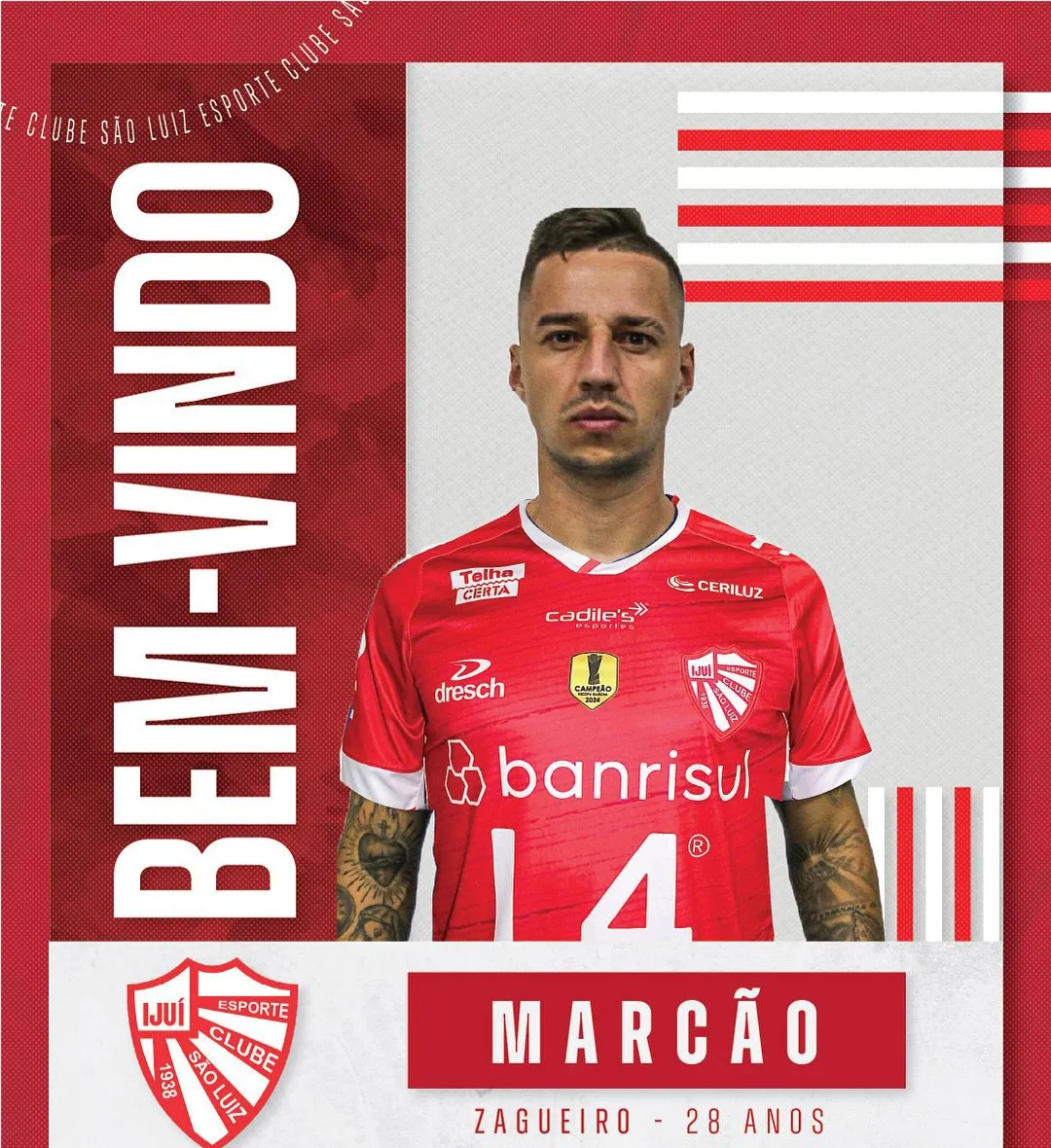 O São Luiz anunciou a primeira contratação para 2026. Trata-se do zagueiro Marcão. O defensor de 28 anos, defendeu o São José-POA na série D do campeonato brasileiro. Entrou em campo em 16 jogos pelo clube da capital.