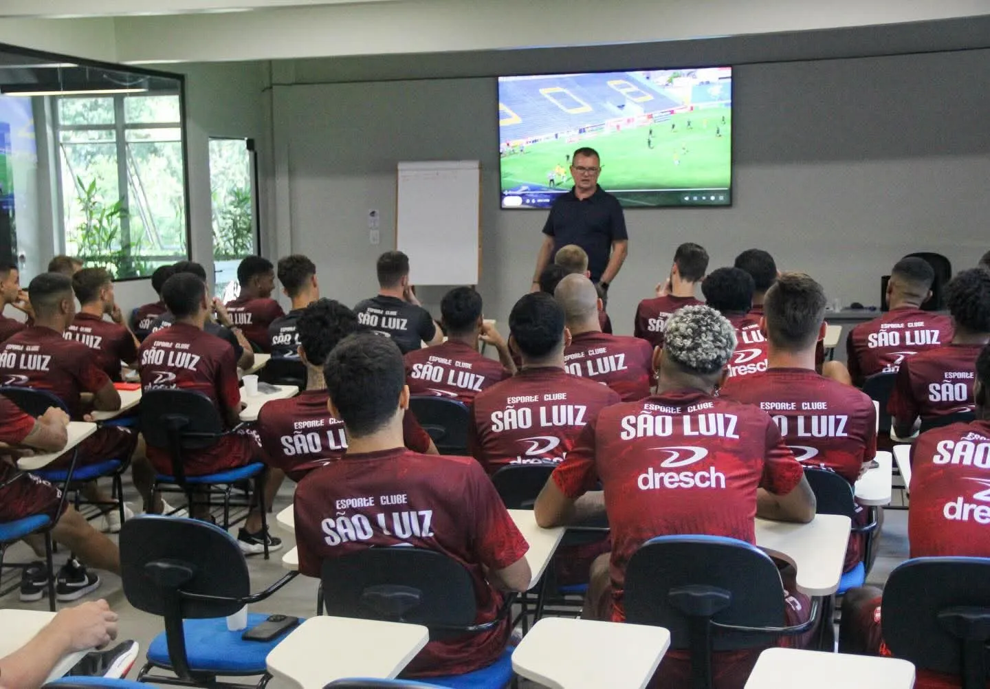 Na tarde desta sexta-feira, dia dois, jogadores, comissão técnica e dirigentes do Esporte Clube São Luiz participaram de uma palestra realizada na Associação Comercial e Industrial de Ijuí, a ACI. O encontro contou com a participação dos ex-árbitros Leandro Vuaden e Altemir Hausmann.