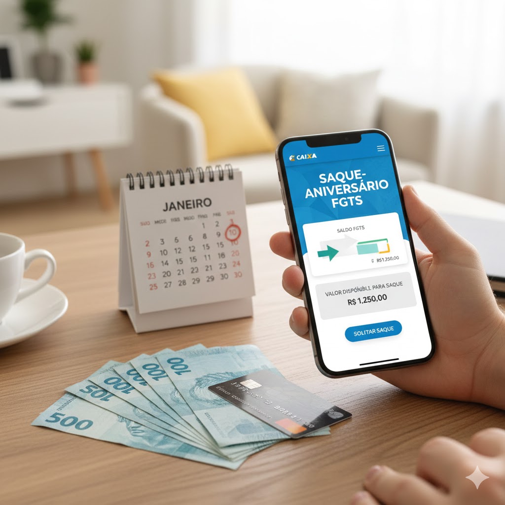 O Saque-Aniversário do FGTS para 2026 já está disponível para os trabalhadores nascidos em janeiro, que têm até o dia 31 de março para retirar o dinheiro. Esta modalidade permite o saque de uma parte do saldo do fundo anualmente, variando conforme o valor total acumulado na conta.