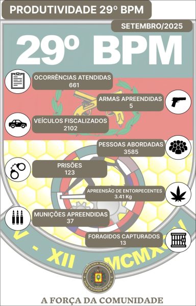 O 29º Batalhão de Polícia Militar, com sede em Ijuí, divulgou hoje, 03, o boletim com o resumo das atividades realizadas pela Brigada Militar em setembro.