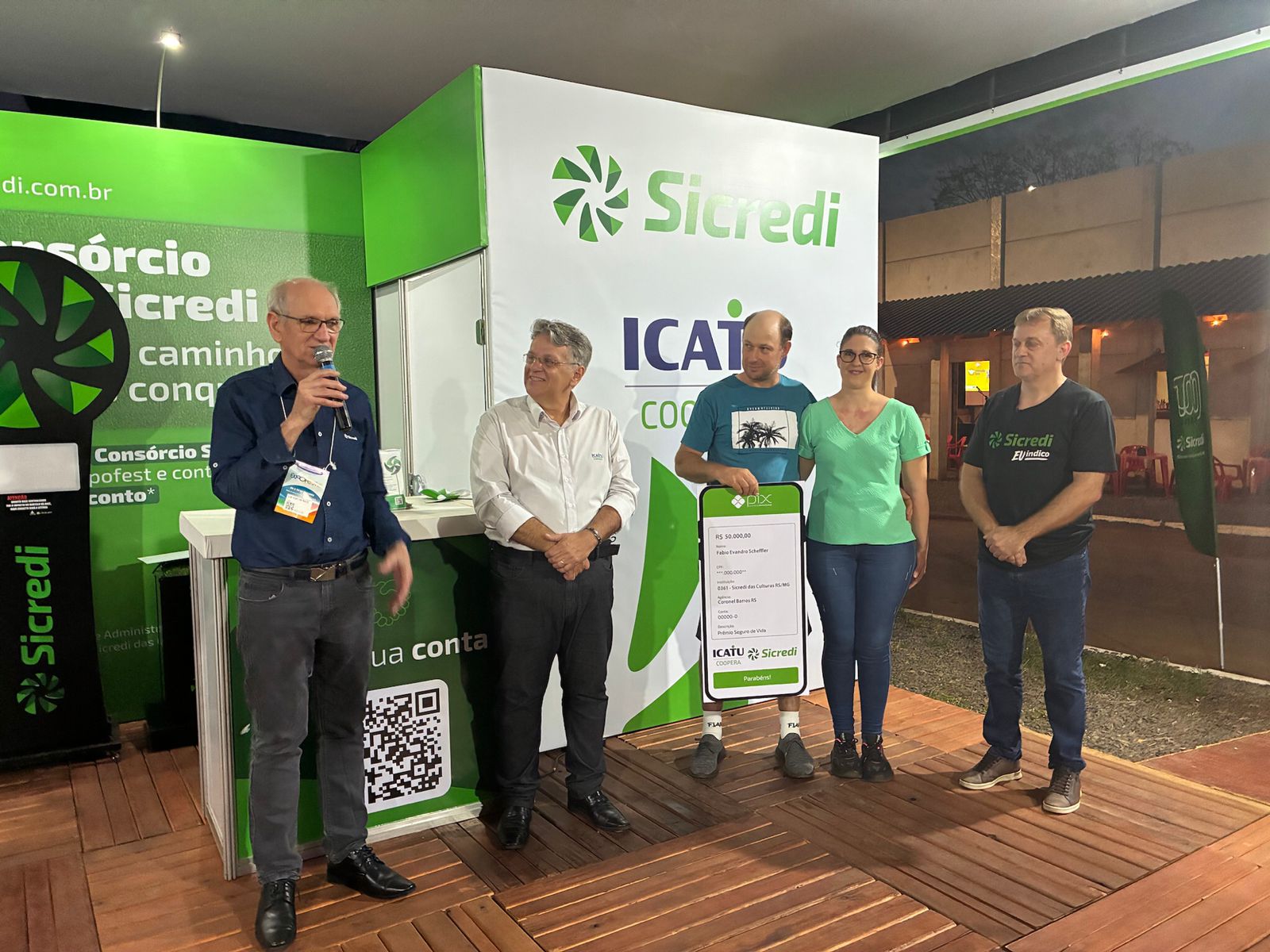 O associado Fábio Evandro Scheffler, da agência Sicredi em Coronel Barros, foi contemplado com um prêmio em dinheiro referente ao seu seguro de vida. A entrega surpresa, em parceria com a Icatu Seguros, aconteceu nesta quarta-feira (15) no Espaço Agro do Sicredi, dentro da Expofest 2025 em Ijuí.