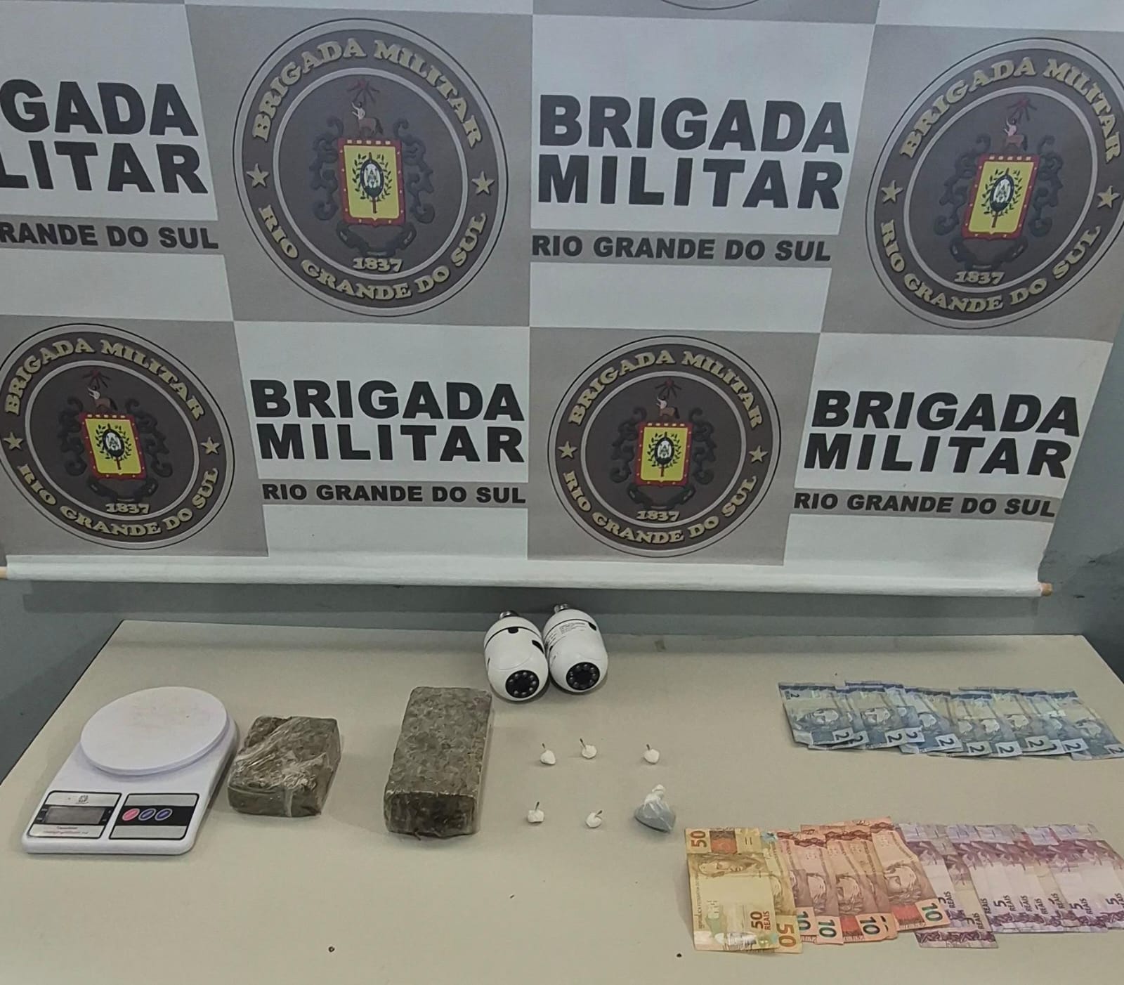 Na tarde de ontem, a Brigada Militar e Ijuí prendeu um homem por tráfico de entorpecentes, no centro da cidade. Policiais receberam informações de que um indivíduo realizava venda de drogas em um estabelecimento comercial. Em averiguação, o suspeito foi localizado e com ele encontradas cinco porções de cocaína, uma de maconha, mais dois tijolos de maconha, balança de precisão e dinheiro. O homem foi levado para a Polícia Civil de Ijuí.