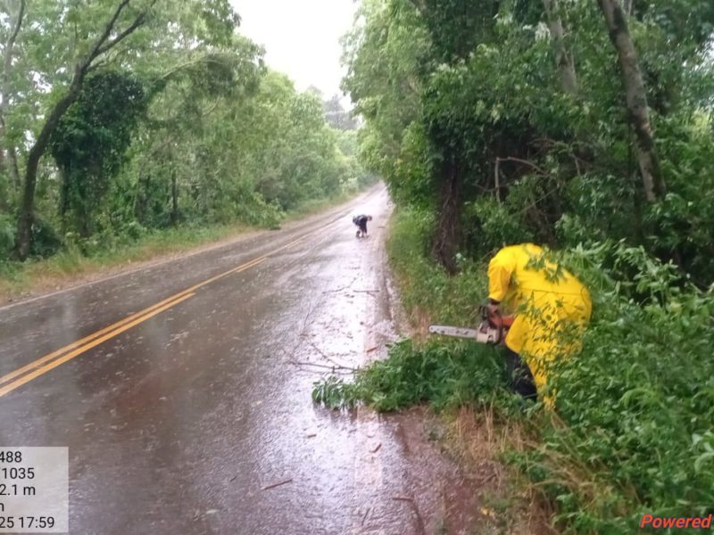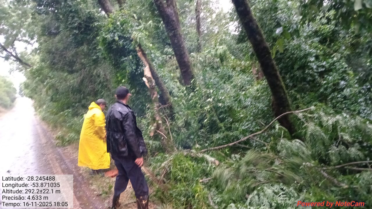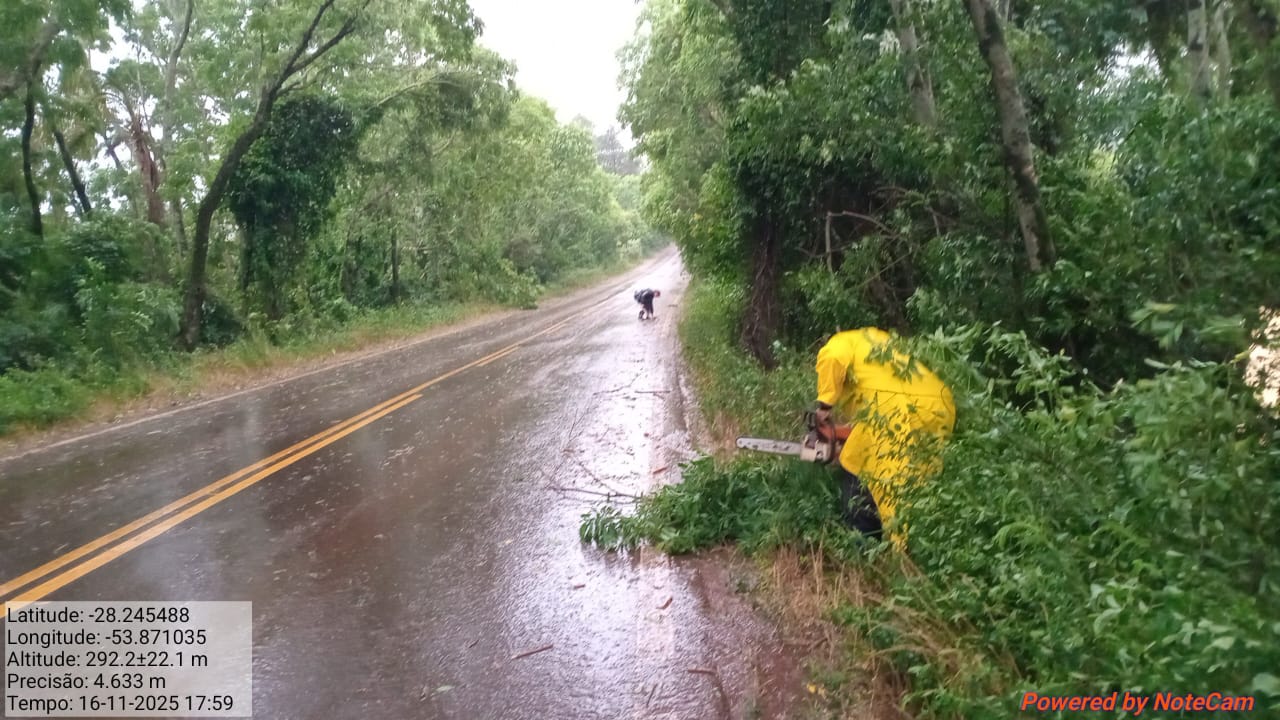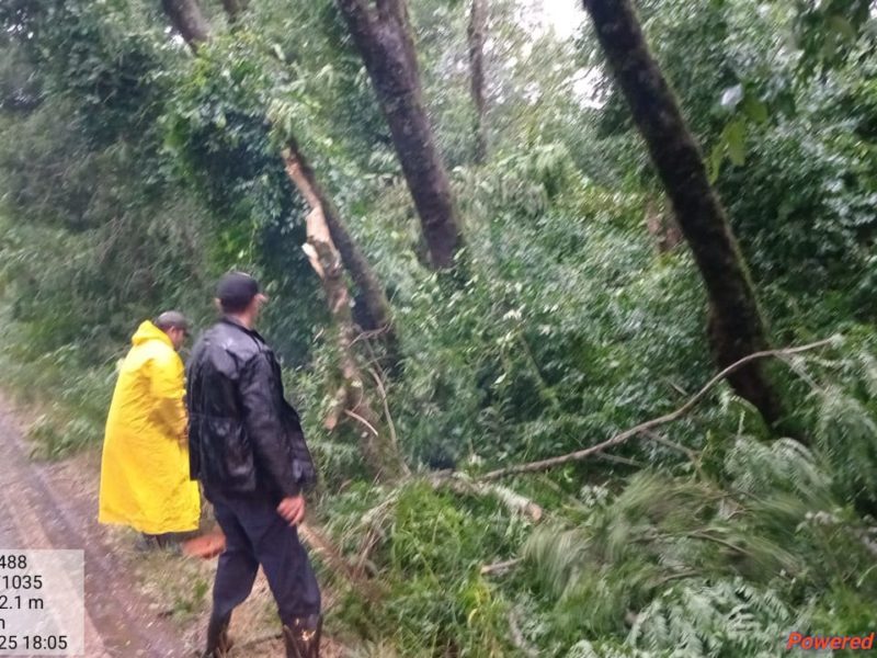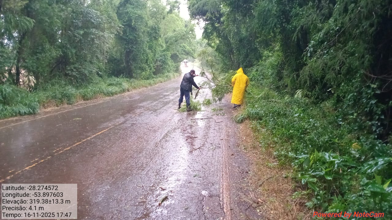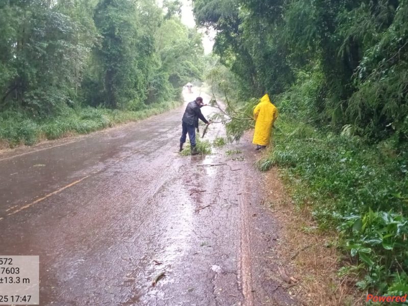 Um temporal registrado na tarde deste domingo, 16, provocou queda de árvores e quebra de galhos ao longo da ERS-514, no trecho entre Ajuricaba e o distrito de Chorão, em Ijuí. Alguns galhos e árvores chegaram a cair sobre a pista, exigindo atenção redobrada dos motoristas.