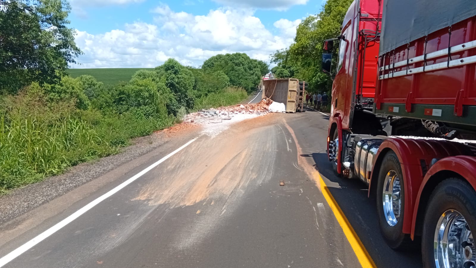 Um acidente de trânsito registrado no início da tarde desta quarta-feira (21), provoca engarrafamento no KM 146 da ERS-342, trecho entre Ijuí e Cruz Alta. Na ocasião, um caminhão carregado de tijolos tombou, deixando o trânsito interditado.