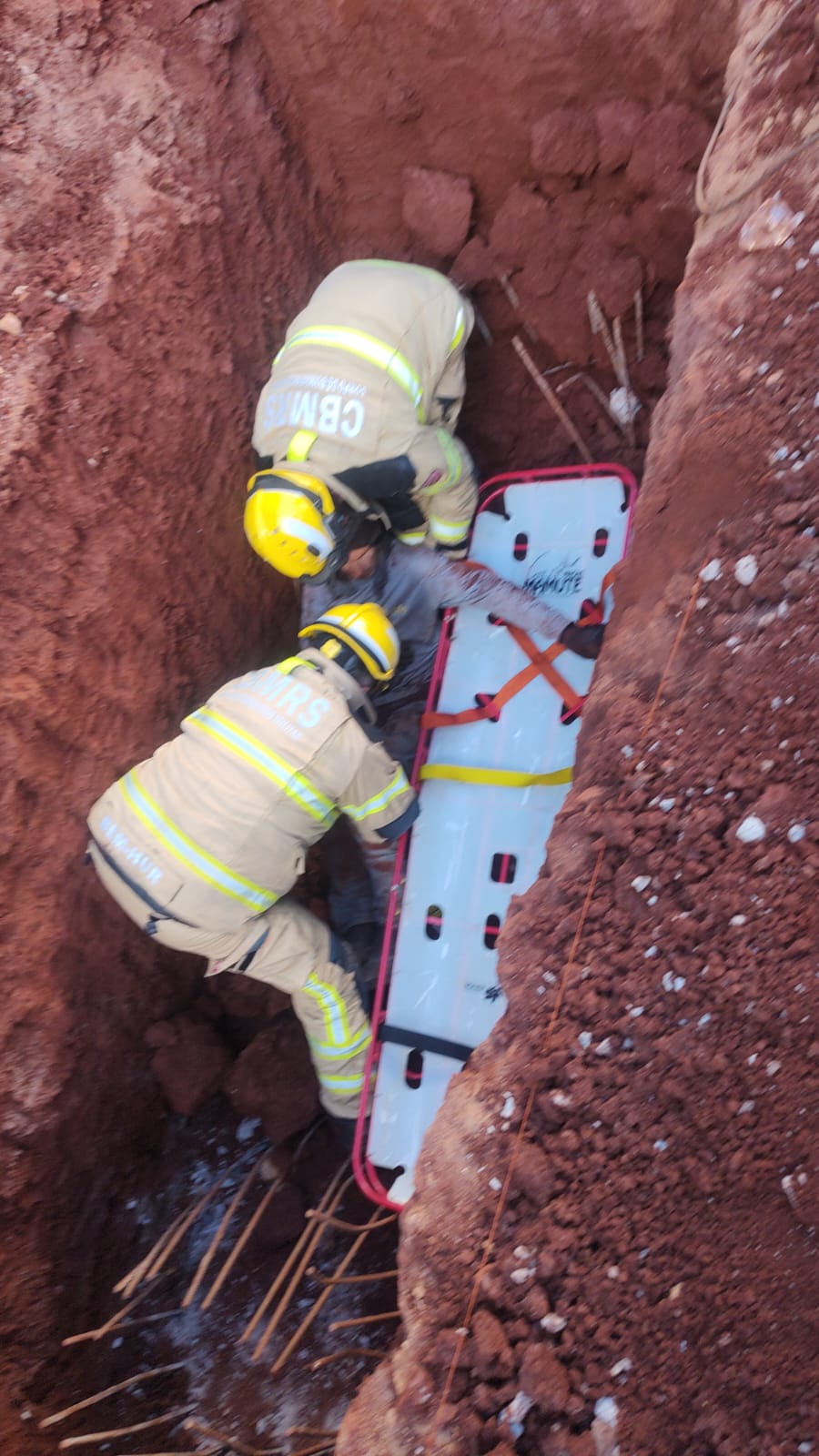 Foto: Corpo de Bombeiros SA Um trabalhador ficou ferido após ser parcialmente soterrado em um acidente de trabalho na tarde de ontem, 09, numa obra de construção civil na área central de Santo Ângelo.