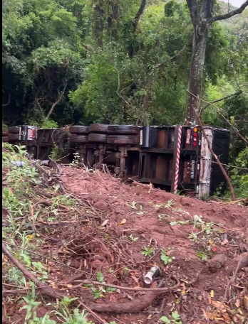 Acidente ocorreu hoje à tarde no quilômetro 145 da ERS 342, em Cruz Alta, local onde nas últimas semanas aconteceram vários outros acidentes de trânsito, inclusive com mortes. Uma carreta carregada com pedra brita saiu da pista e tombou num barranco. O motorista estava sozinho e teve apenas escoriações. O trecho fica a cerca de três quilômetros da CCGL.
