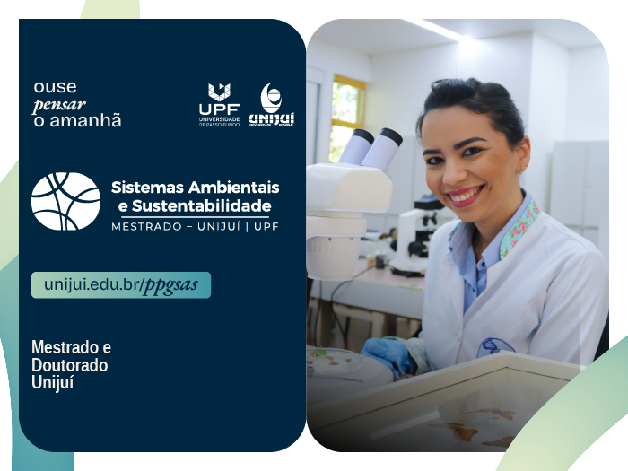 Estão abertas as inscrições para as vagas remanescentes do Mestrado em Sistemas Ambientais e Sustentabilidade da Unijuí. Ao todo, são ofertadas 10 vagas, e os interessados têm até o dia 23 de fevereiro para realizar a inscrição por meio do site unijui.edu.br/ppgsas, acessando a opção Processo Seletivo e Matrícula.