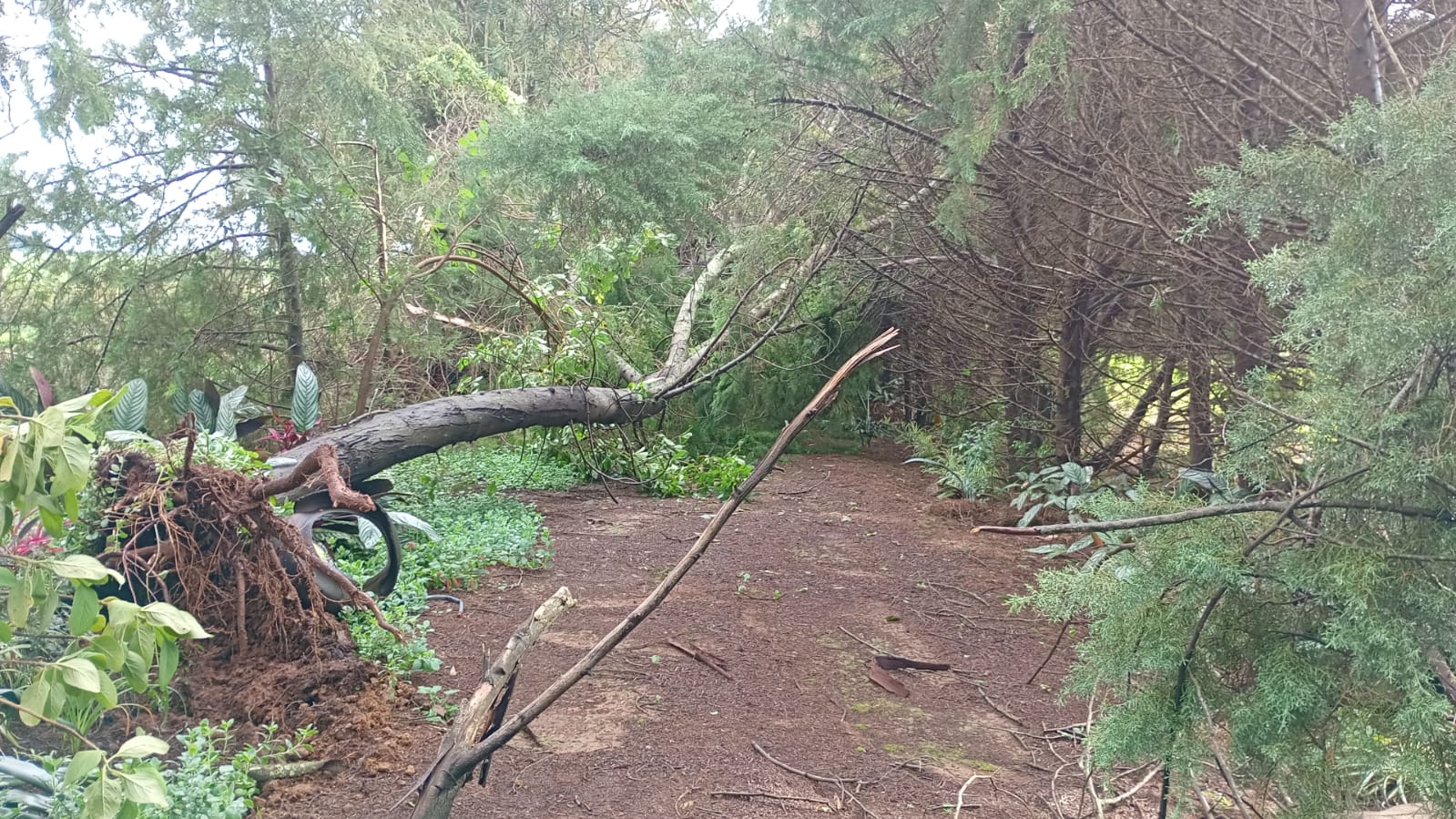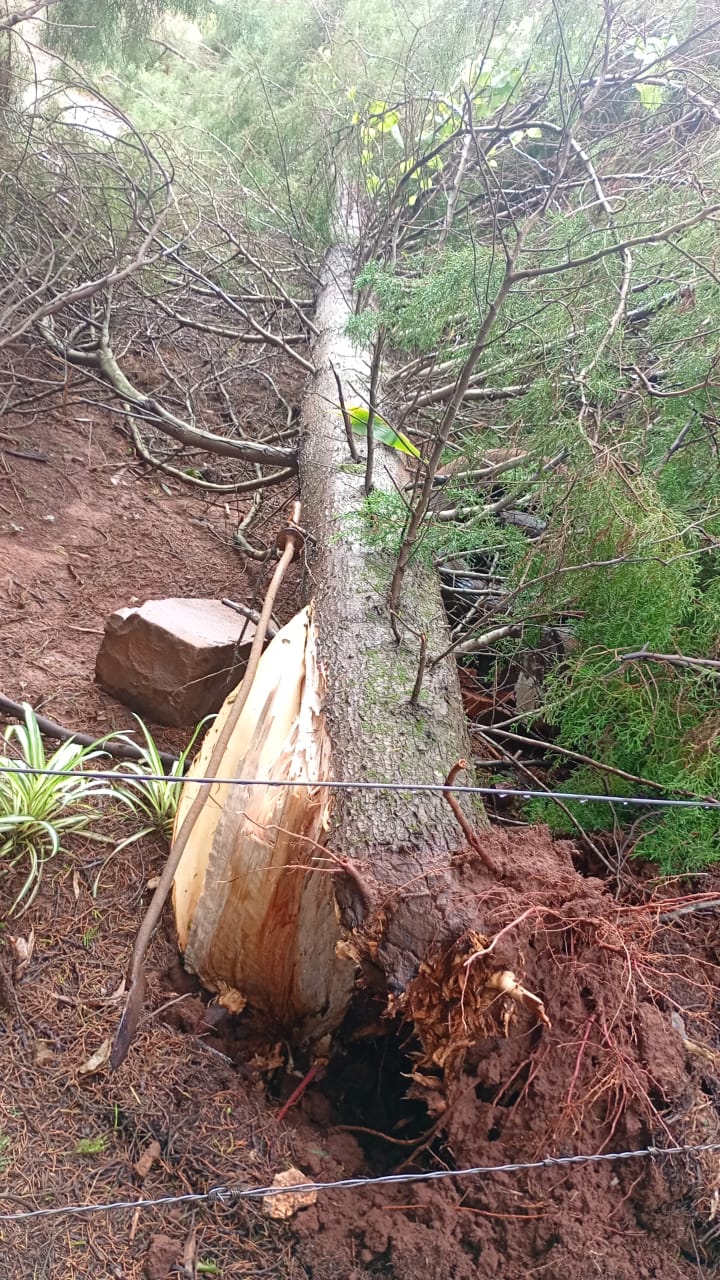 A proprietária Ivanete dos Santos Pinto e a família relataram que uma espécie de tornado atingiu o Sítio Coxilha da Onça por volta das 18 horas. Segundo relatos, o vento foi antecedido por um barulho como de uma “turbina de avião” e após a passagem foi visível o estrago em pelo menos 12 árvores. Confira nas fotos: