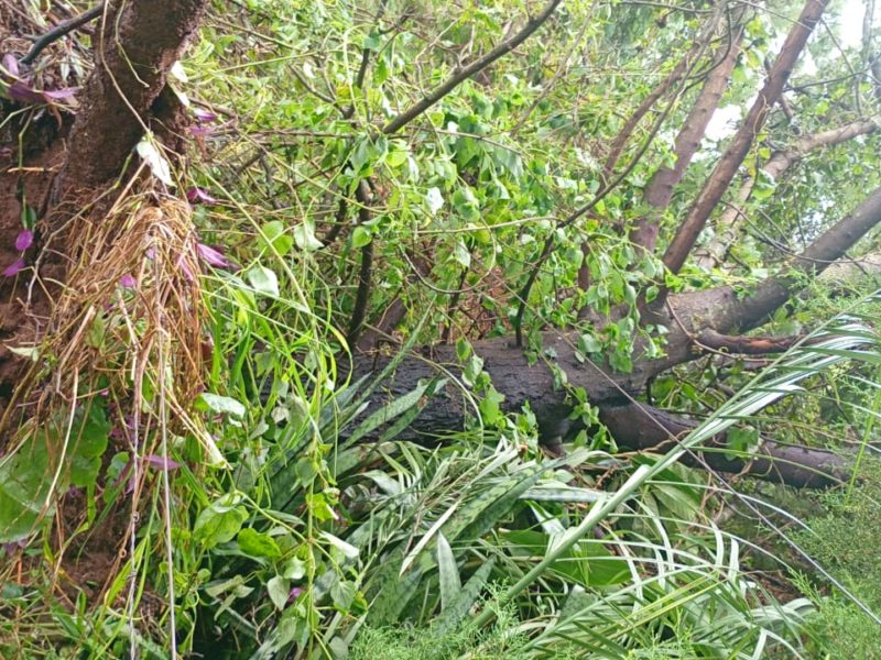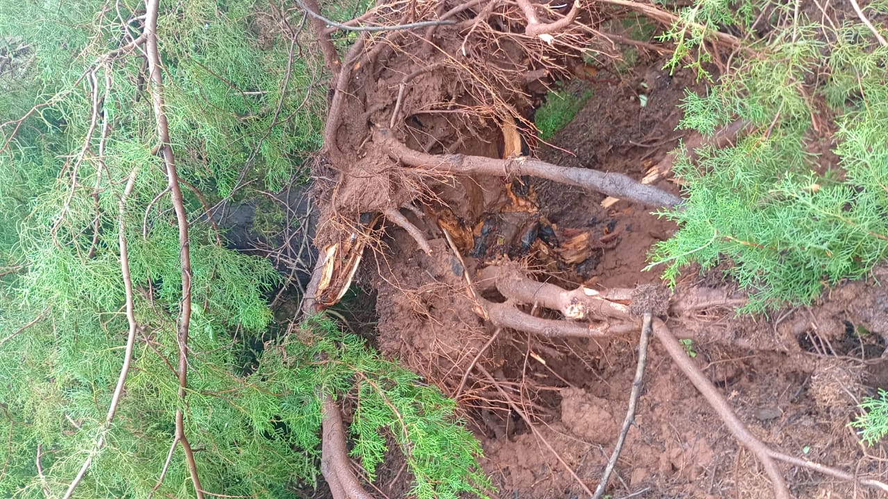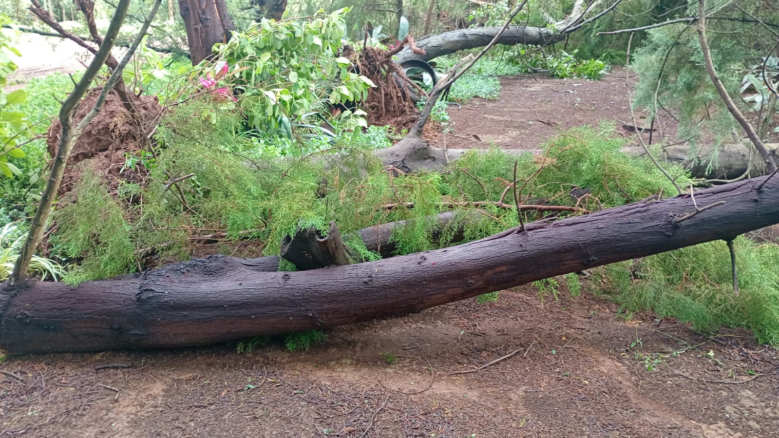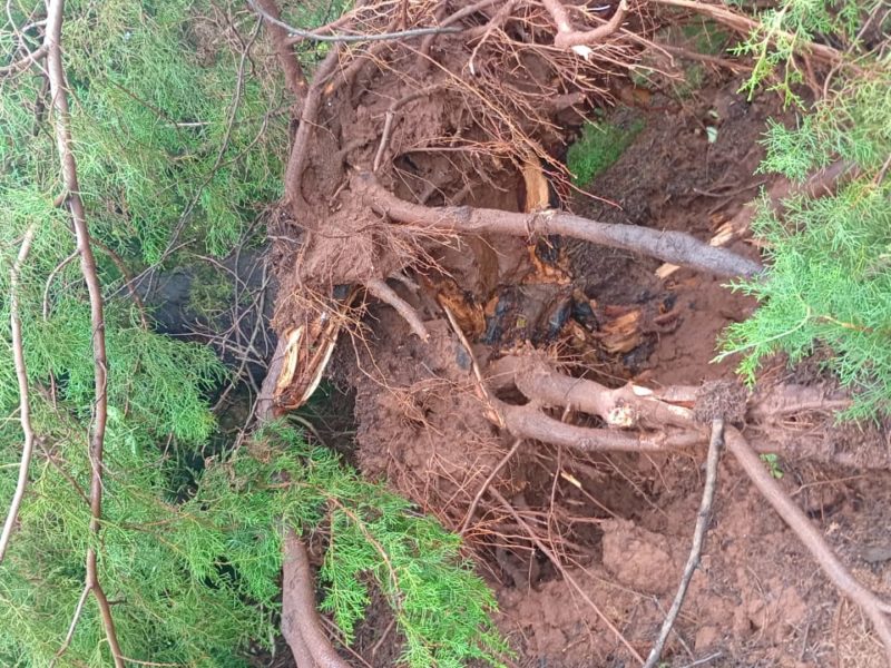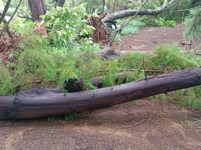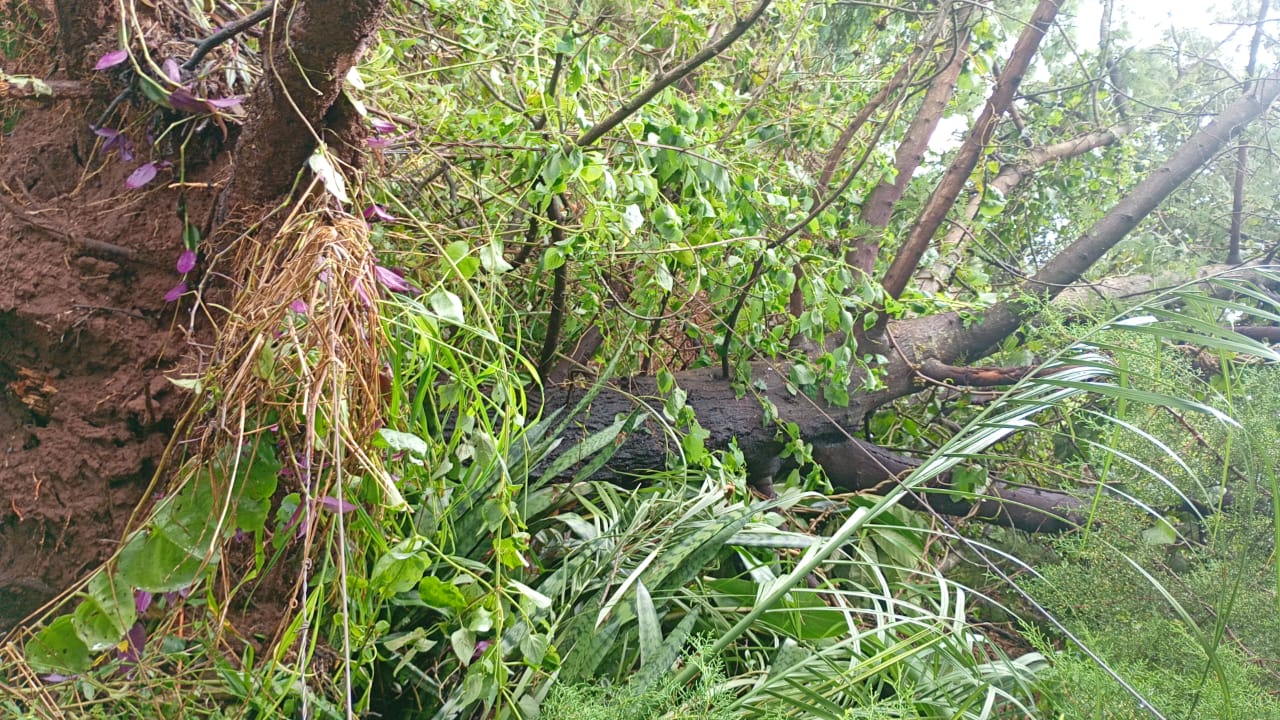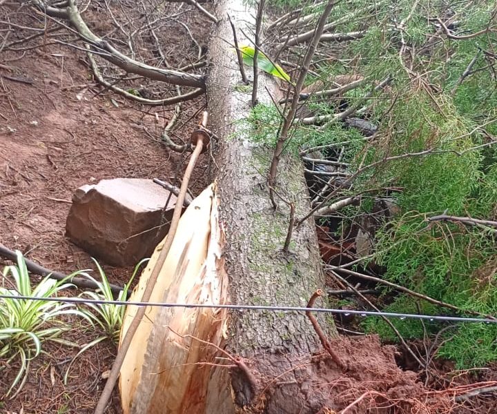 Foto: Ivanete dos Santos O vento forte associado a chuva do fim da tarde de ontem, 28, arrancou e danificou árvores em uma propriedade na localidade de São João Mirim, no interior de Jóia.