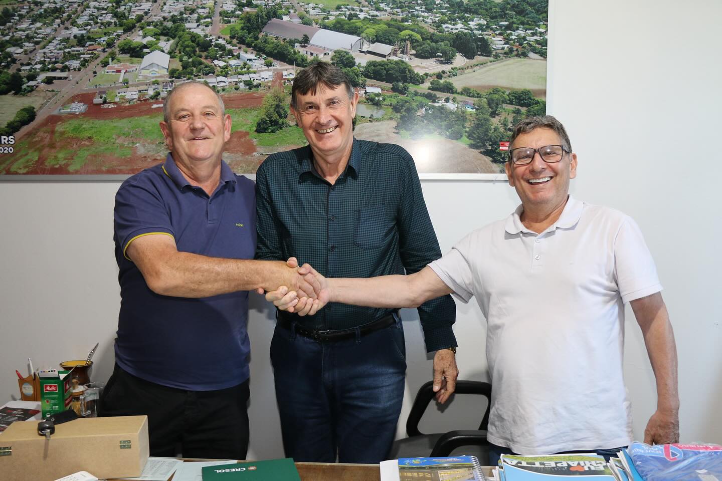 Hoje, o prefeito, Osmar Kuhn, e o vice, Mario Maçalai, transmitiram o comando interino do Executivo de Chiapetta ao vereador Ênio Delatorre, que assume a chefia da prefeitura durante esta semana. Ênio vai acompanhar de perto as ações e projetos em andamento.