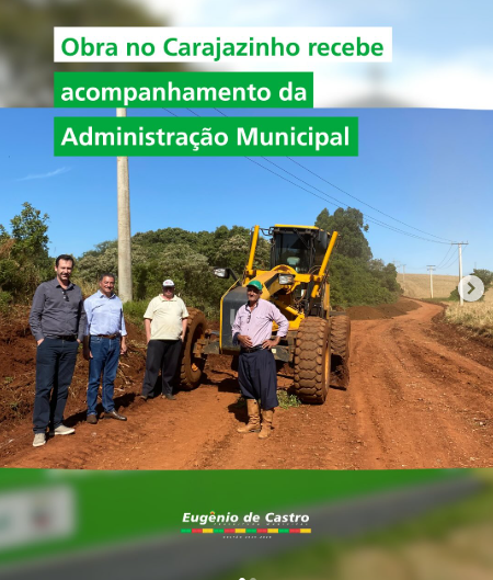 O vice-prefeito de Eugênio de Castro, Eduardo Bechorner, atua como prefeito interino até amanhã, visto que o titular, Fernando Machado, cumpre agenda oficial em Brasília e Porto Alegre. Como uma das atividades à frente do Executivo de Eugênio de Castro, Eduardo Bechorner realizou vistoria nas obras de encascalhamento da estrada da localidade de Carajazinho. O empedramento de 7 km, com recursos do Estado, está em fase de conclusão.