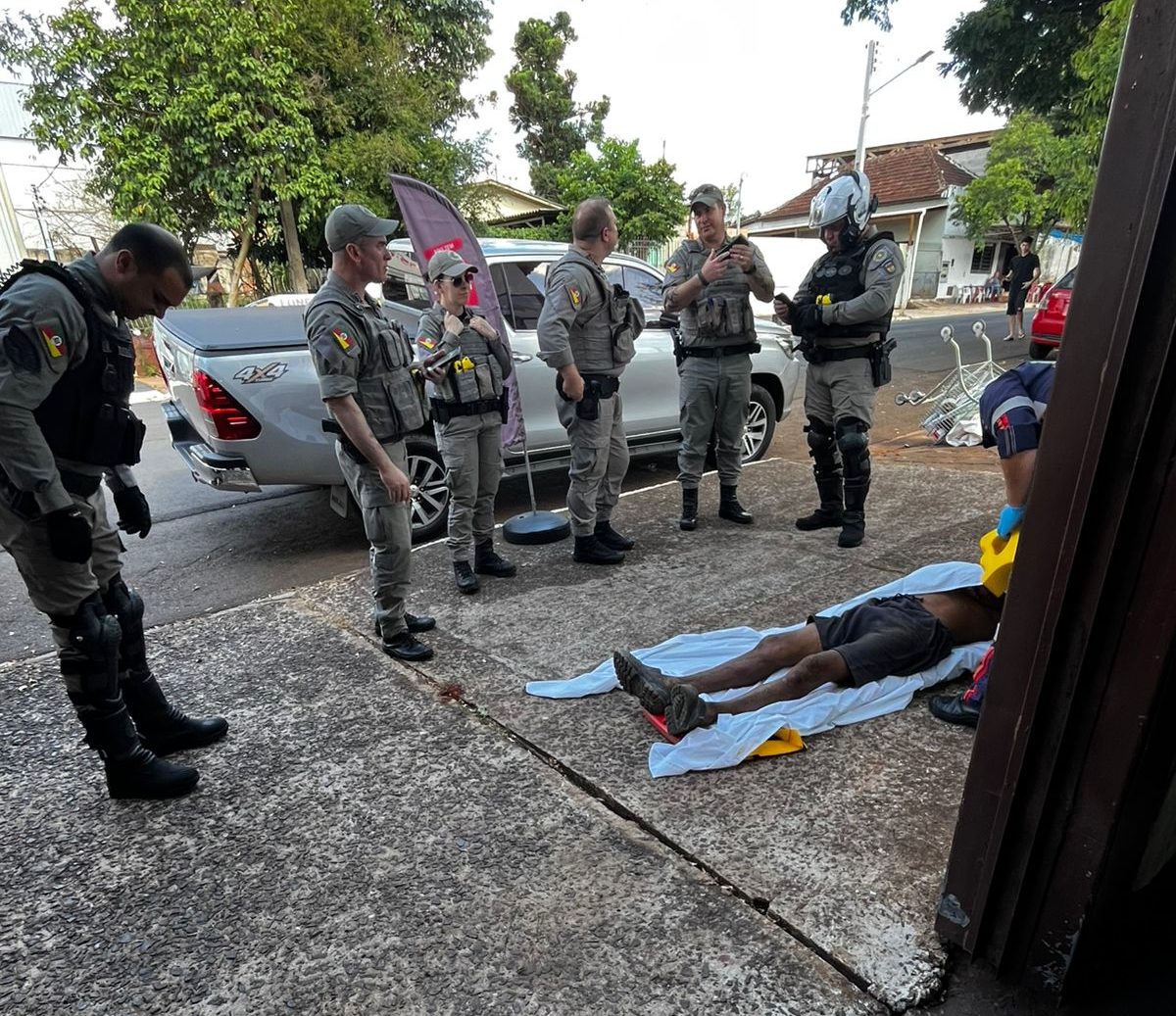 A guarnição foi chamada para prestar apoio ao SAMU, encontrando um homem lesionado que estava caído nas proximidades do Campo do Gaúcho. O suspeito não estava mais no local. A vítima foi levada consciente ao Hospital de Clínicas Ijuí.